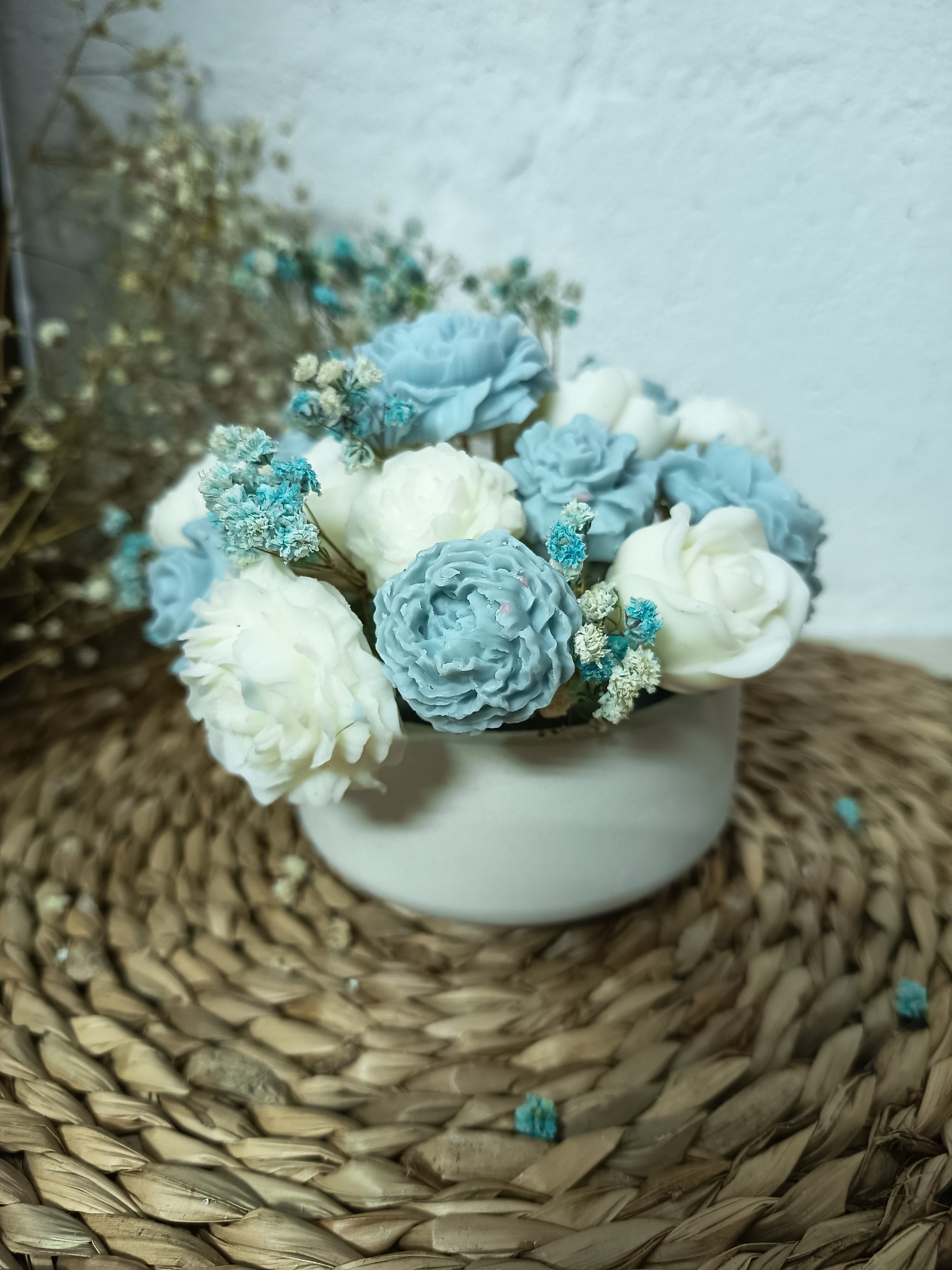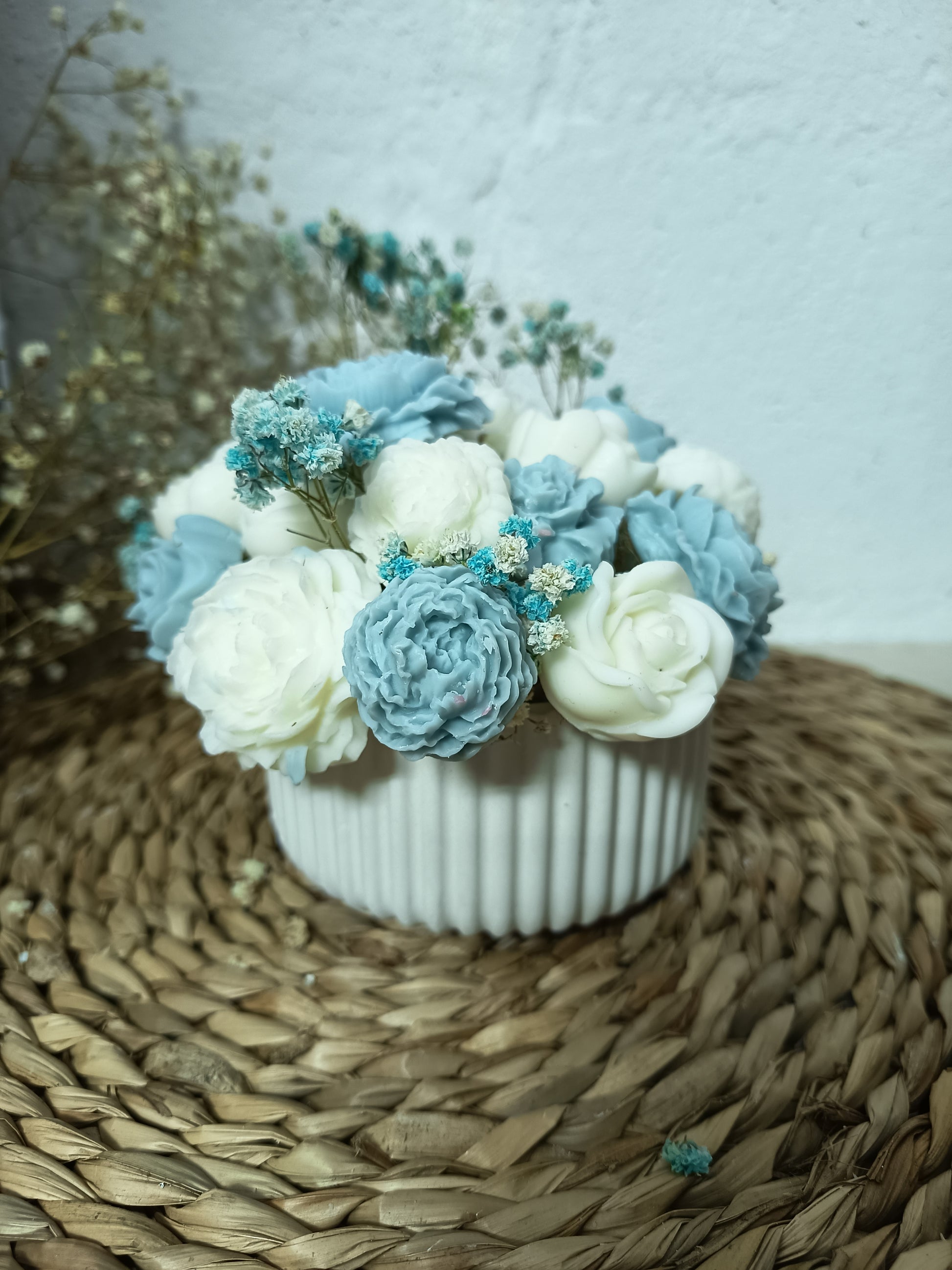 Los BouWax son centros de flores aromáticos de cera de soja 100% elaborados como un Wax Melt para decorar y aromatizar tu espacio al mismo tiempo.