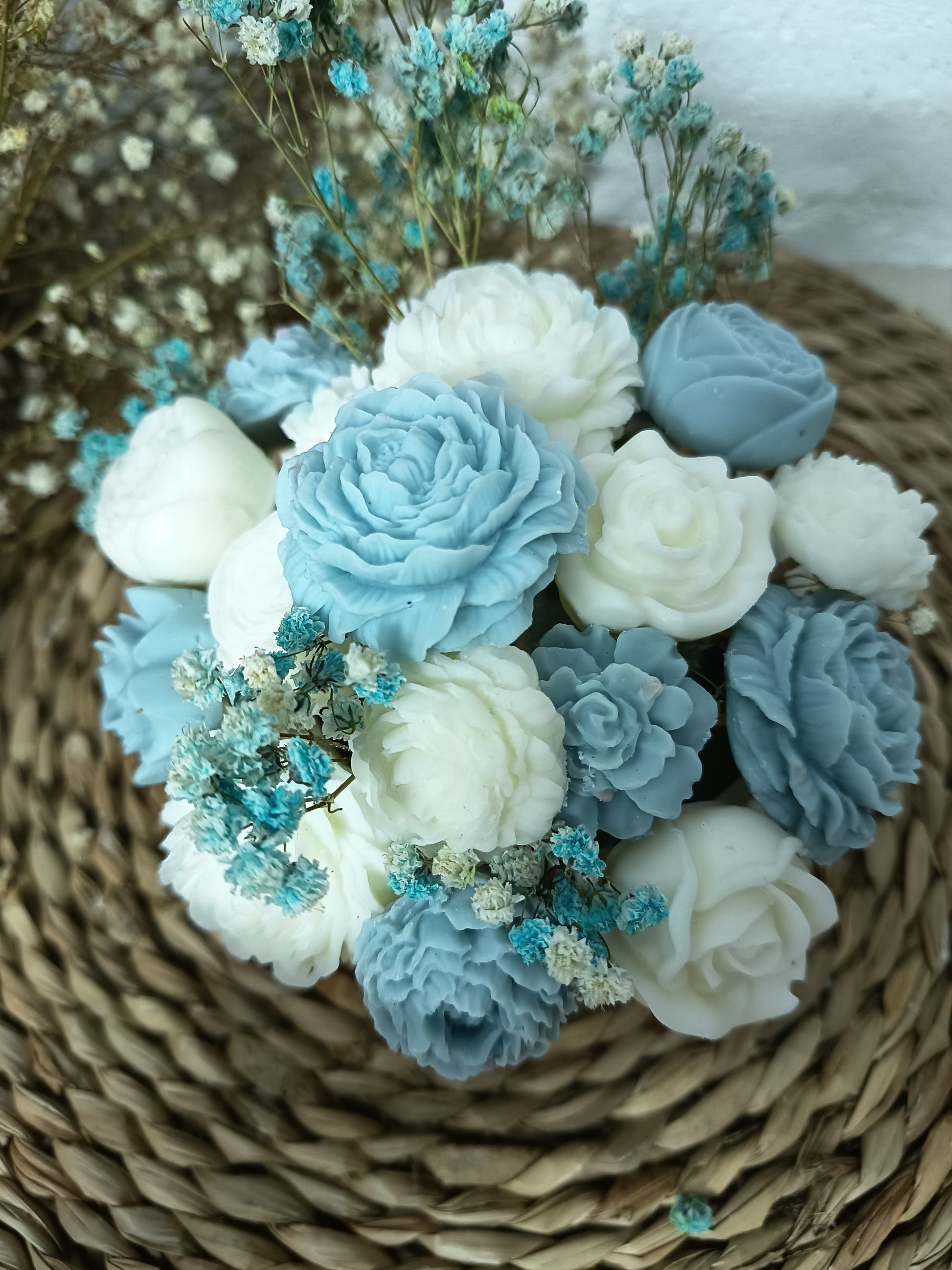 Transforma tu espacio con este delicado Bouquet de 20 flores de cera de Soja , creado artesanalmente para perfumar de forma sutil y elegante. A diferencia de los Wax Melts tradicionales, el BouWax se presenta en un diseño decorativo único que puede colocarse tal cual en tu ambiente o usarse en quemadores para liberar su aroma.