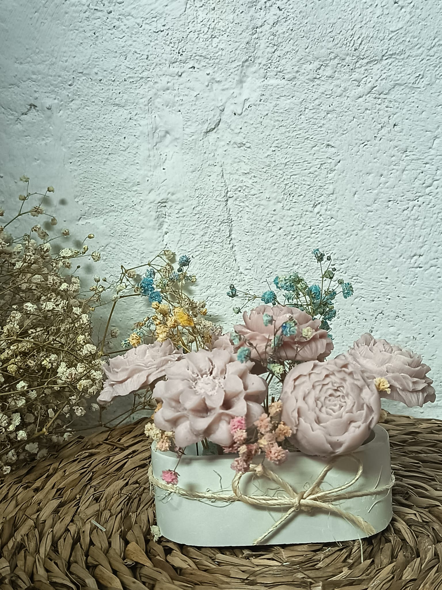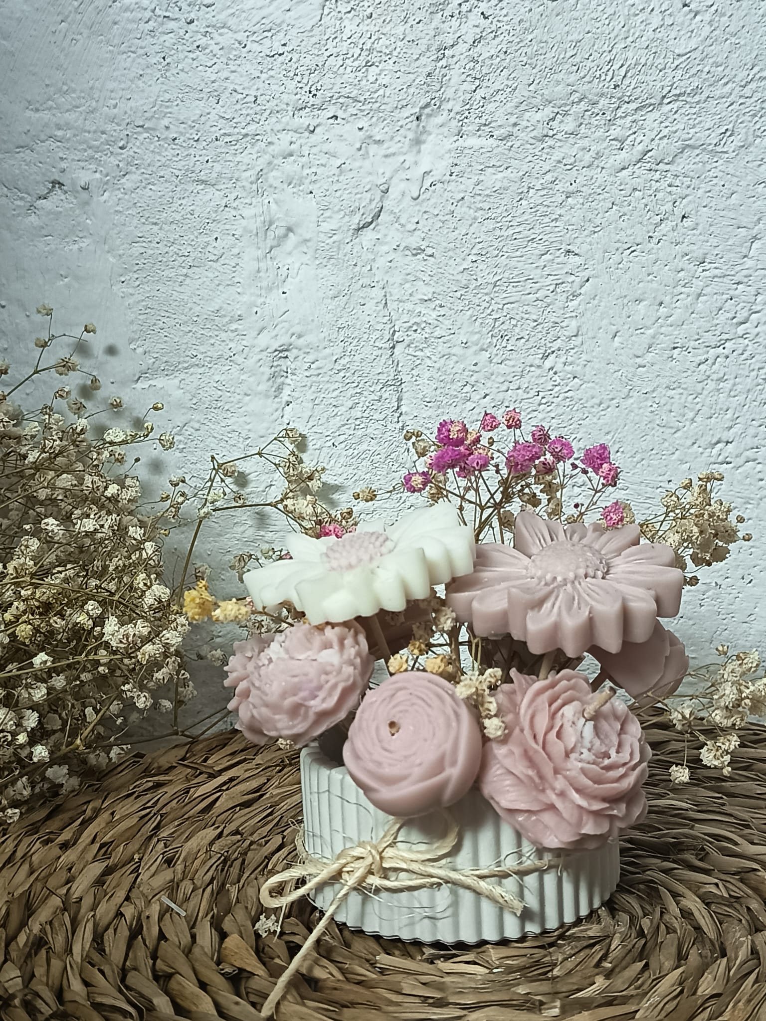 Los BouWax son centros de flores aromáticos de cera de soja 100% elaborados como un Wax Melt para decorar y aromatizar tu espacio al mismo tiempo.
