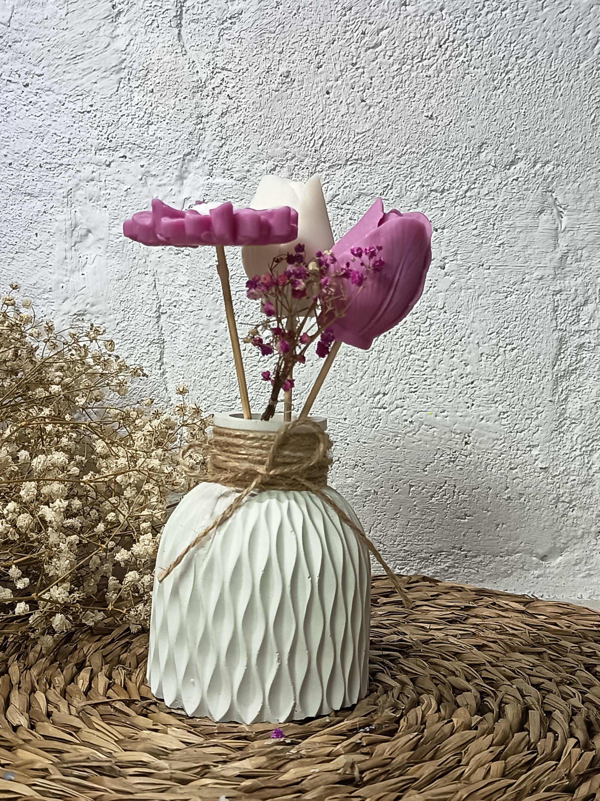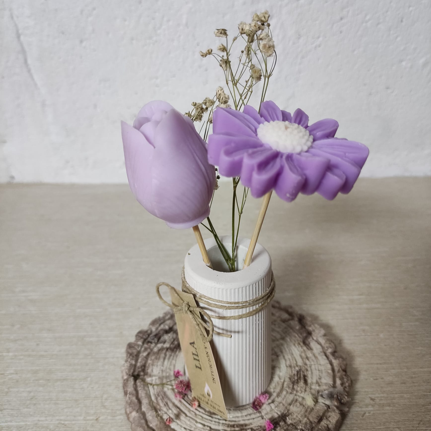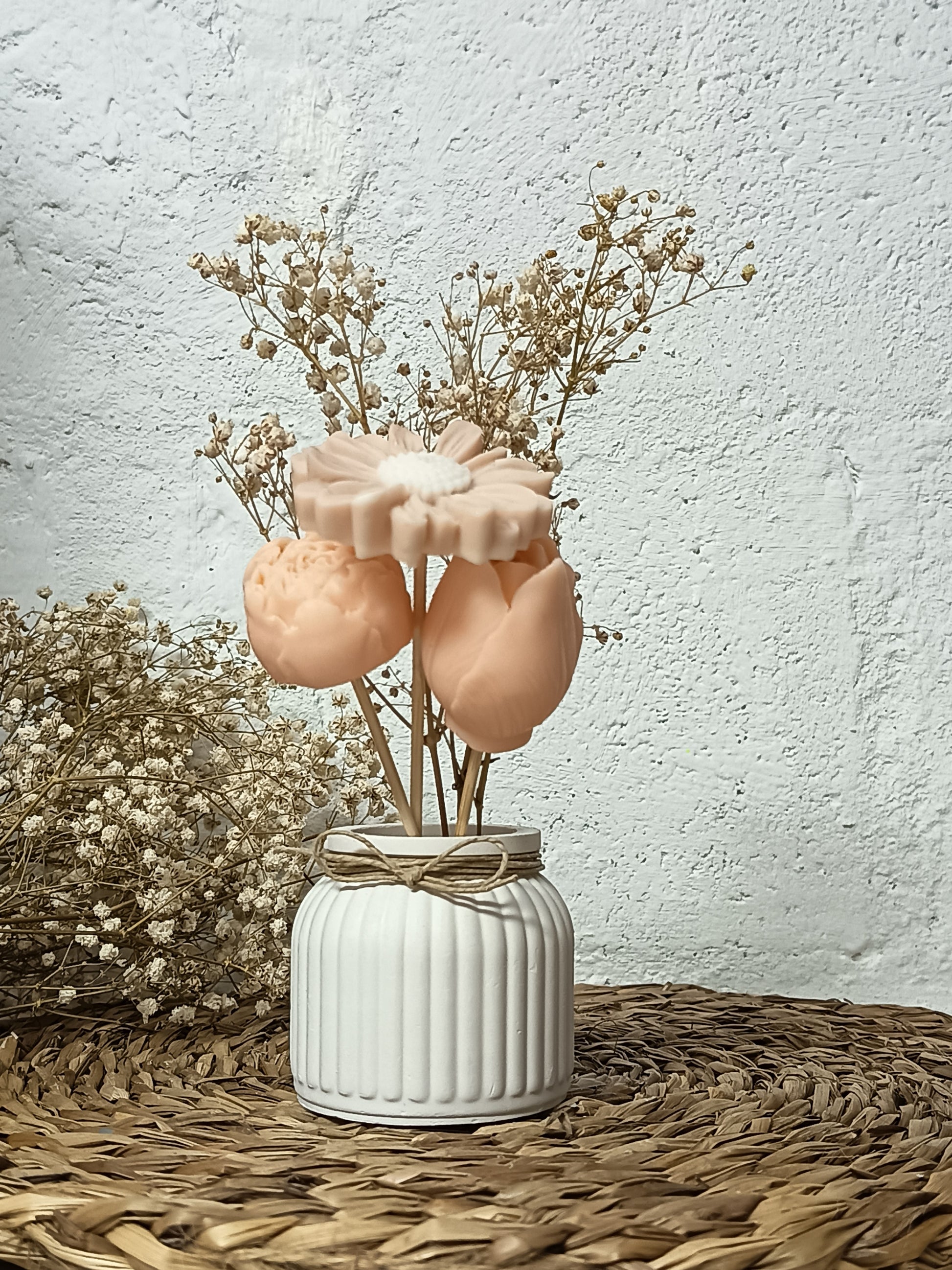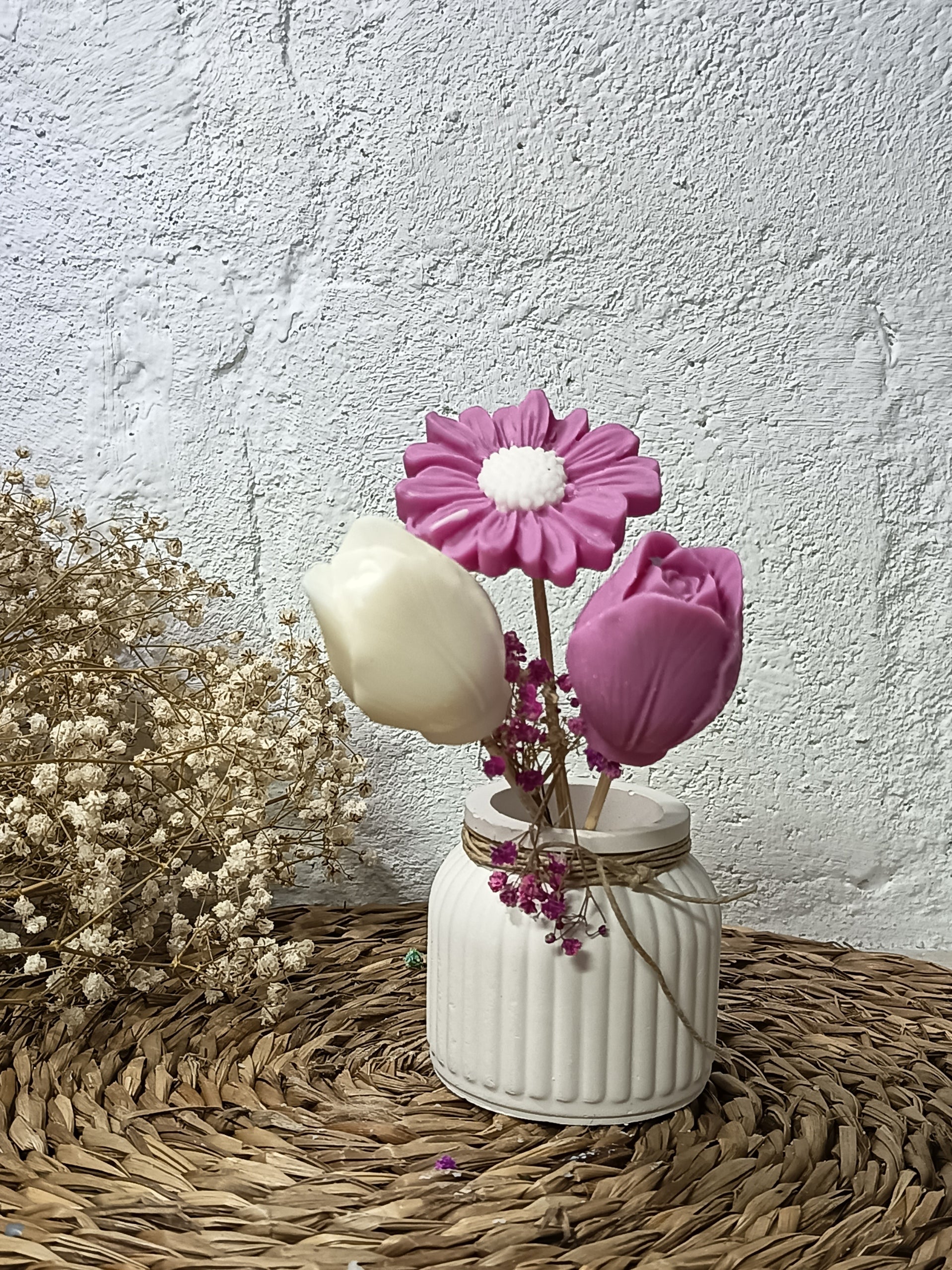 Descubra la perfecta fusión entre arte y aroma con nuestros arreglos florales de cera de soja. Diseñados para embellecer cualquier espacio, cada pieza es artesanal que , ofreciendo una experiencia sensorial única.