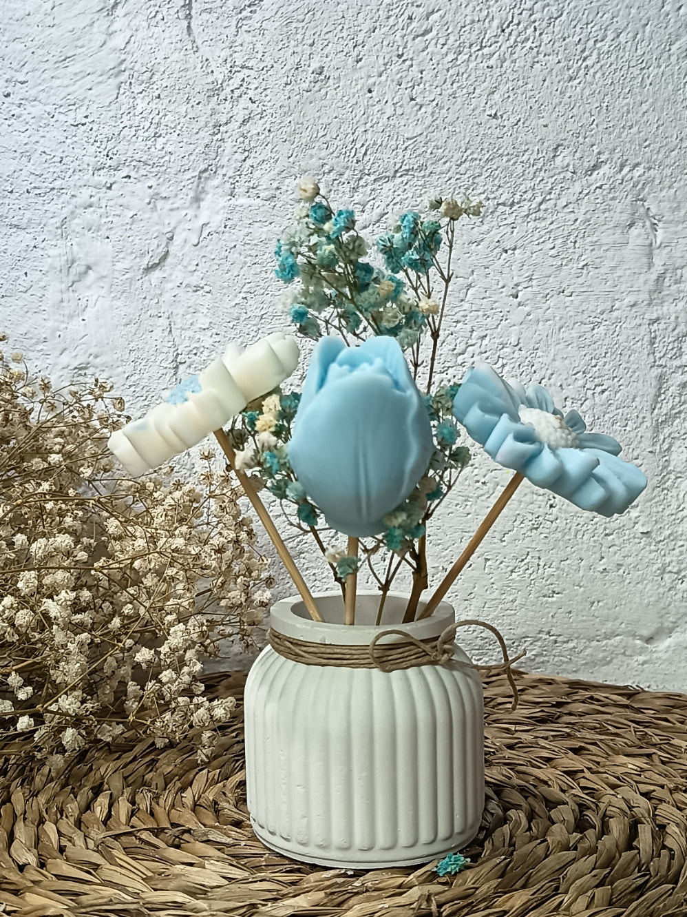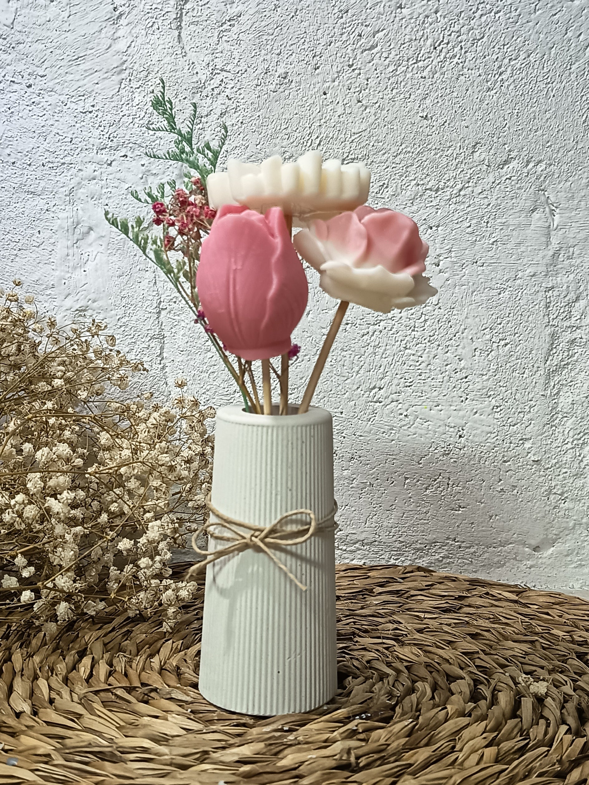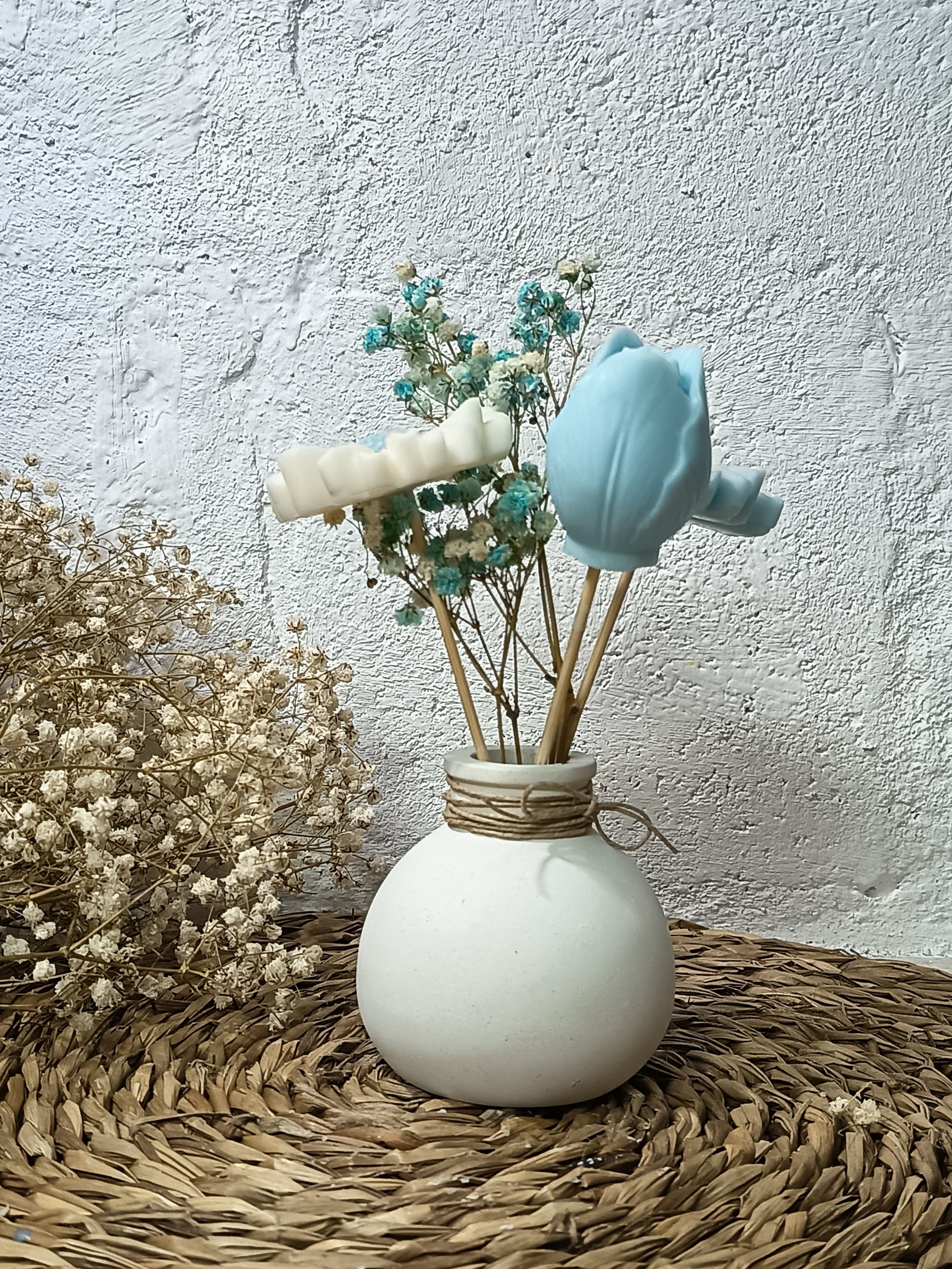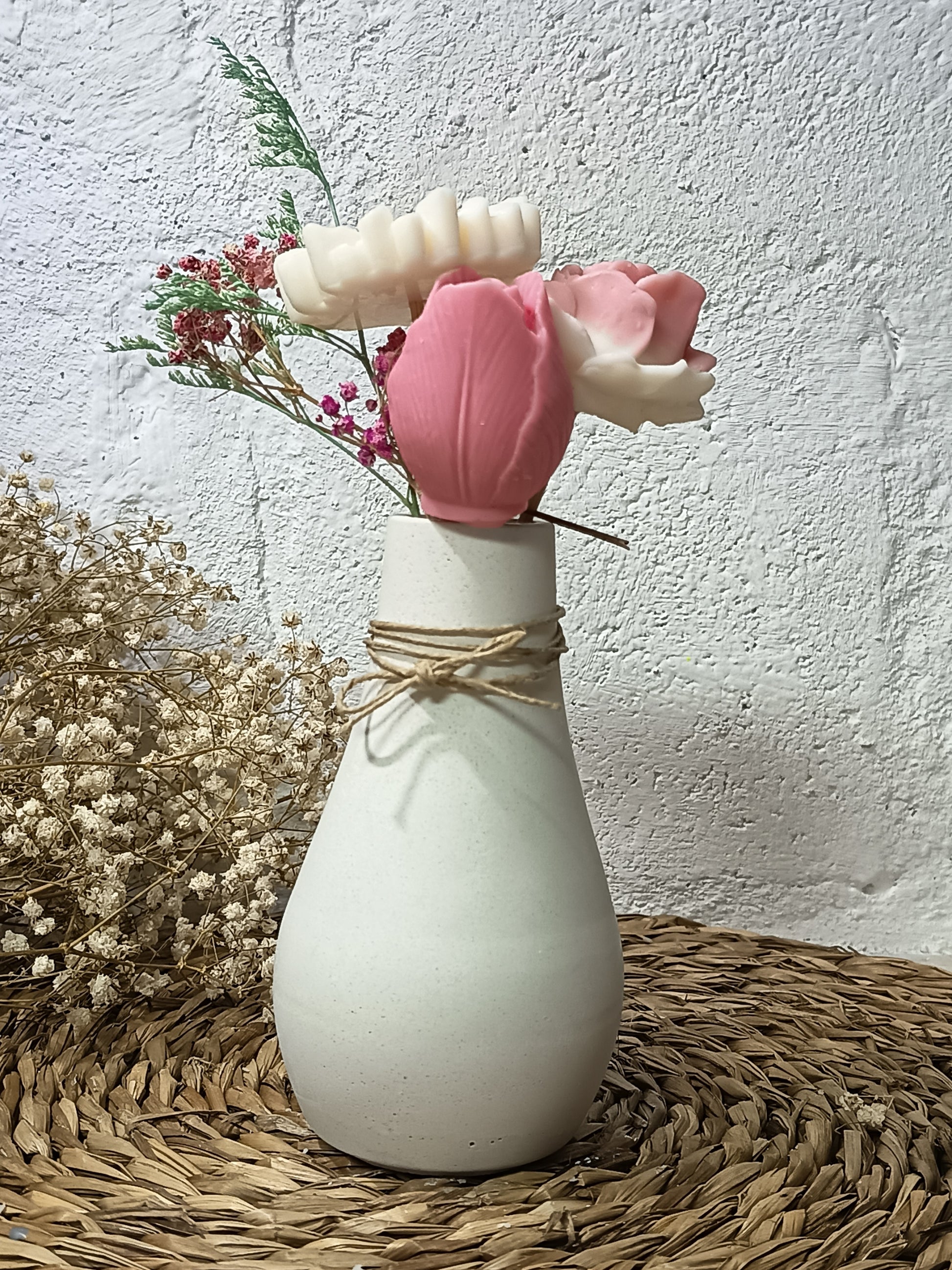 Descubra la perfecta fusión entre arte y aroma con nuestros arreglos florales de cera de soja. Diseñados para embellecer cualquier espacio, cada pieza es artesanal que , ofreciendo una experiencia sensorial única.