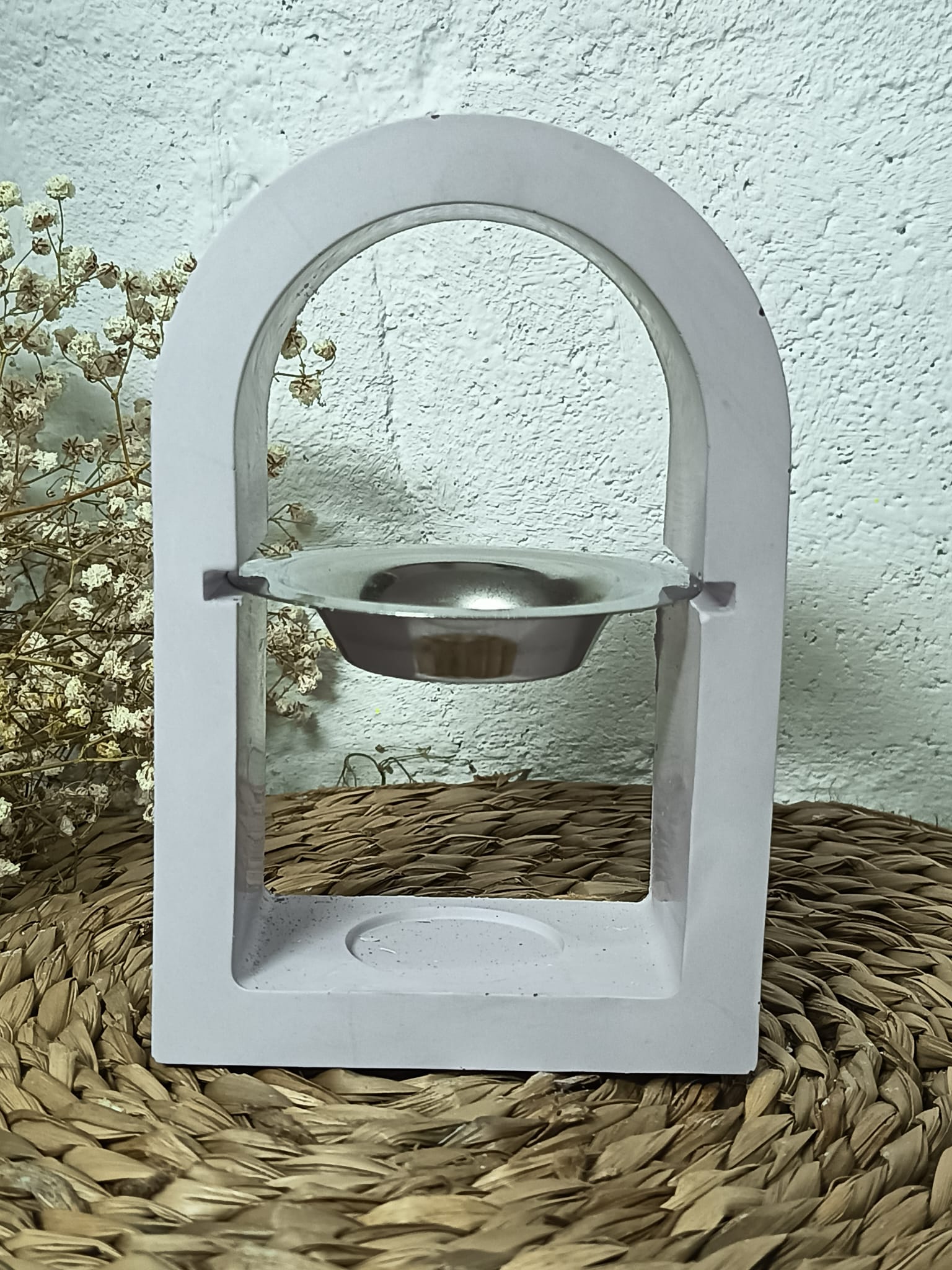 Coloca una vela tipo té en la base y tu Wax Melt o esencia favorita en el cuenco superior, en pocos minutos, tu espacio se llenará de un aroma acogedor que invita a la calma y la relajación.