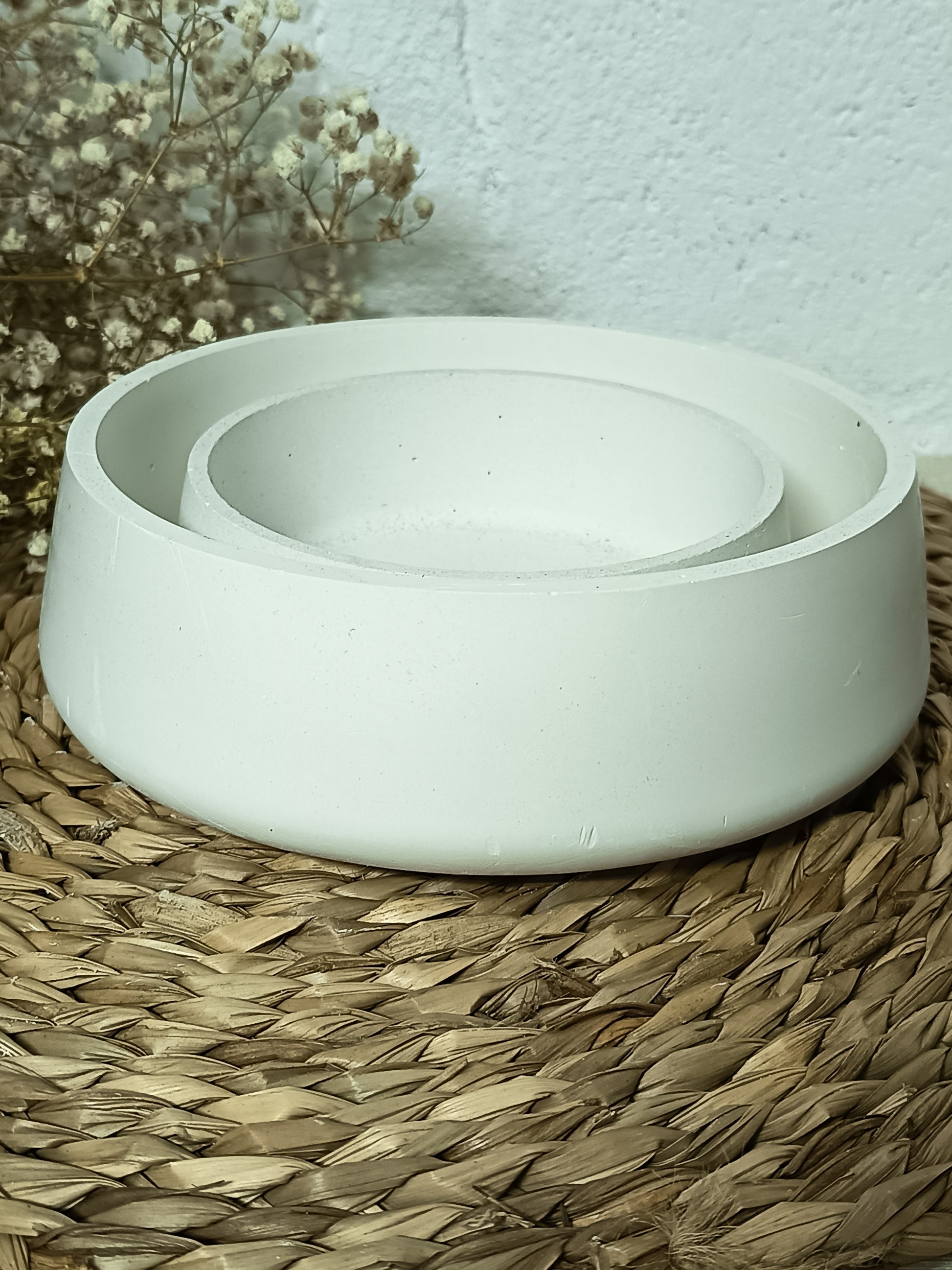 Un dúo de cuencos de líneas limpias y acabado liso que aportan frescura y sencillez. Ideales para almacenaje de pequeños objetos, como maceteros para flores o simplemente como piezas decorativas para tus espacios.